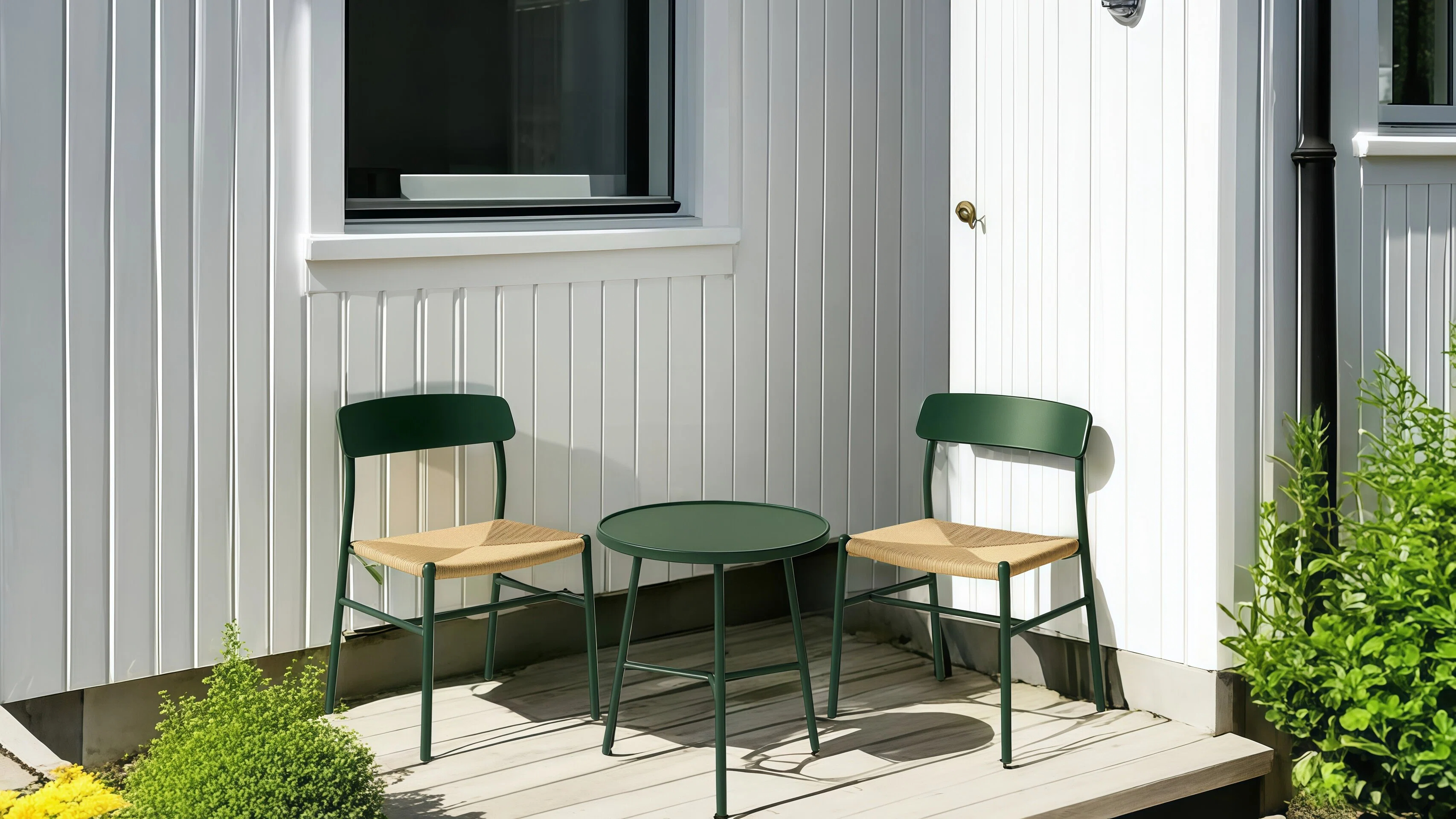 This outdoor dining set is perfect for patios, gardens, and backyard gatherings.